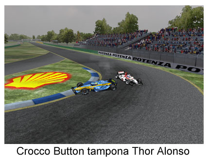 Crocco, è vero, non hai inciso molto sul risultato finale. I freni a thor, xeno e a me si sarebbero rotti cmq, per via del ridotto valore dei condotti freni che li hanno usurati in fretta (problema confermato da una caterva di forum di F1 Challenge che ho visto). Sto visionando il filmato del doppiaggio di Tony. Hai fatto le tue traiettorie, ma ad un certo punto, forse perchè la macchina ha derapato, non so, è come se l'avessi chiuso e tony ti ha toccato dietro. L'art.3 comma 1 dice "Il pilota che sta per essere doppiato, ricevuto l'avviso, dovrà, appena questo e' possibile in sicurezza, dare strada al doppiatore cercando di non rallentarne il ritmo;" Il ritmo di tony è stato un po' rallentato però mi viene il dubbio: Ma le bandiere blu ti sono state esposte? Nel caso ti fossero state esposte, il tuo comportamento in pista è effettivamente dubbio (sto fatto del "appena questo e' possibile in sicurezza" però bisogna vedere che significa). Cmq, poi Tony si è innvervosito ed ha gridato infrangendo l'art.2 comma 2 (effettivamente io con le cuffie e il volume a palla l'ho sentito lo stesso!!! ehehe!!!). Quindi 1-1 e macchine in griglia . Per me non ha senso parlare di ricorso. Per il tamponamento su Thor poi non c'è molto da dire...