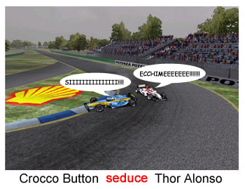 Dunque...per la guida in "digitale"...l'ho notato anch'io!sembra una cosa dovuta al fatto che devo abituarmi al nuovo volante che al centro ha un zona morta molto strana con cui sto prendendo confidenza(e mi sa che mi converra' venire qualche sera a casa di marco x girare un po'). Per quanto riguarda il doppiaggio da parte di Tony...se ci fai caso quando mi arrivano le bandiere blu cerco di girare + lento di prima x far si che lui potesse passare senza pero' decellarare all'improvviso. Me lo trovo incollato dietro che nn riesce a sorpassarmi, le curve si susseguono senza particolari punti x fare una decellerazione decente o cambiare traiettoria senza uscire fuori di strada x farlo passare e faccio una strana frenata in curva in cui mi parte il "di dietro" (mancanza di esperienza). Ora: dare strada senza rallentarne il ritmo nn credo significhi che io mi debba mettere a fare zig zag per far passare il doppiatore. Credo che un rallentamento sia + che sufficiente! Il doppiatore cambia un attimo traiettoria e mi supera in maniera + sicura no?(guardare i gp veri in cui i doppiati si scansano dalla traiettoria solo se è evidentemente impossibile dare strada senza farlo) E' andata cosi', finisce li'! Rimane il fatto che se mi becco un altro urlaccio del genere mi riterro' autorizzato a controbattere in egual misura(visto che nn sono previste sanzioni per gli urlatori)...